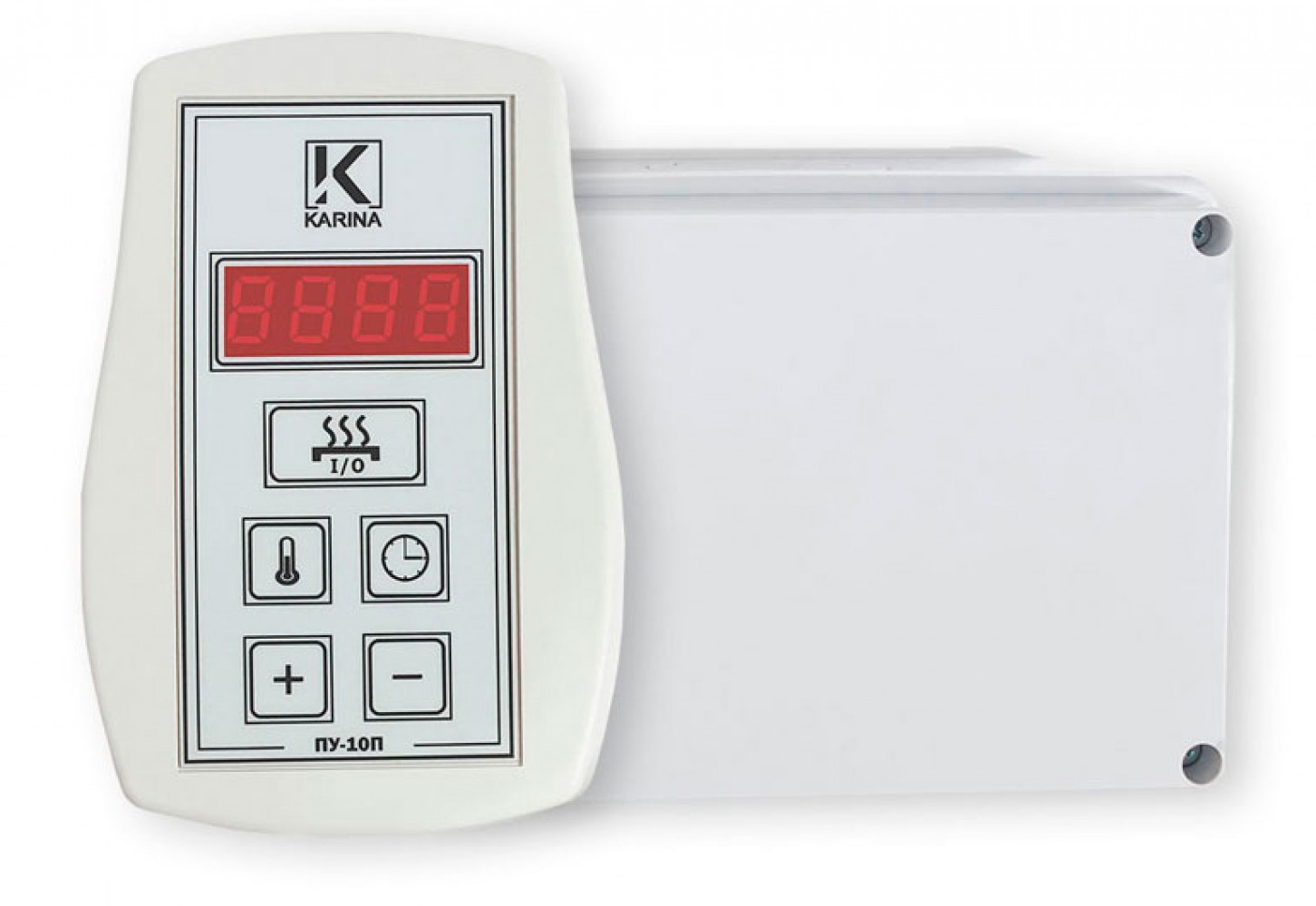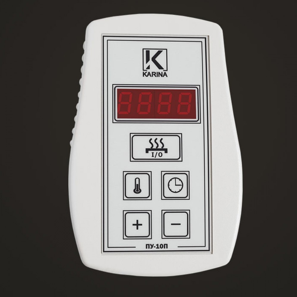 Электрические печи для сауны используются совместно с цифровым пультом управления. Пульт Karina Slim CS18 с выносным силовым блоком, длина кабеля от пульта до блока 2 м. Мощность блока 32 А. Используется для электрокаменок, мощность которых не превышает 18 кВт.