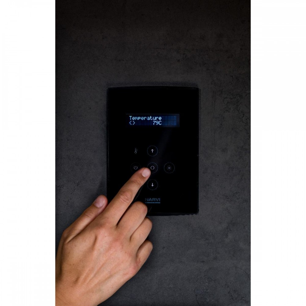 Контроллер сауны Narvi WiFi позволяет вам управлять нагревателем сауны в мобильном приложении в любом месте и в любое время. Легко и безопасно. Приложение сообщает вам о состоянии нагревателя, температуре сауны и оставшемся времени нагрева. Когда вы приедете, вас ждет теплая сауна. Narvi Wifi - это электронная система дистанционного управления электронагревателем, которой можно управлять удаленно с помощью смартфона или планшета. Narvi WiF - это полный комплект, который включает в себя отдельный контроллер с сенсорным экраном, датчик температуры, блок питания и необходимые промежуточные кабели с разъемами. Кроме того, вам понадобится электронагреватель Narvi без управления (электронная модель *) и контроллер для беспроводной домашней сети, достаточно мощный для подключения к Интернету. Для беспроводного управления требуется мобильное устройство (iOS или Android), на которое вы можете бесплатно загрузить удобное приложение, разработанное Narvi (из Google Play или App Store). При разработке приложения Narvi стремился к абсолютной простоте использования. Таким образом, вы можете включить обогреватель из приложения, просто нажав кнопку “включить плиту". Если вы хотите пойти в сауну в определенное время, вы просто устанавливаете нужное время с помощью простого в использовании набора в приложении. Также можно выбрать время начала нагрева. Плита находится под вашим контролем, и вы всегда можете увидеть текущее состояние плиты в приложении. Другие члены семьи также могут самостоятельно управлять плитой со своих мобильных устройств. Стильный контроллер с сенсорным экраном может быть установлен на поверхности или встроен в стену с помощью монтажной пластины, которая поставляется вместе с контроллером. Контроллер оснащен удобными сенсорными клавишами и двухстрочным дисплеем, который содержит много информации. В дополнение к нагревателю, также возможно управлять освещением сауны. Контроллер, как и вся электронная система дистанционного управления, изготовлен в Финляндии.