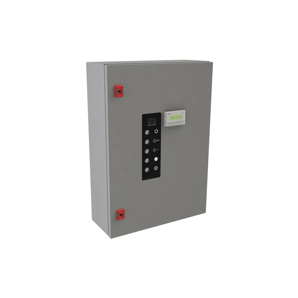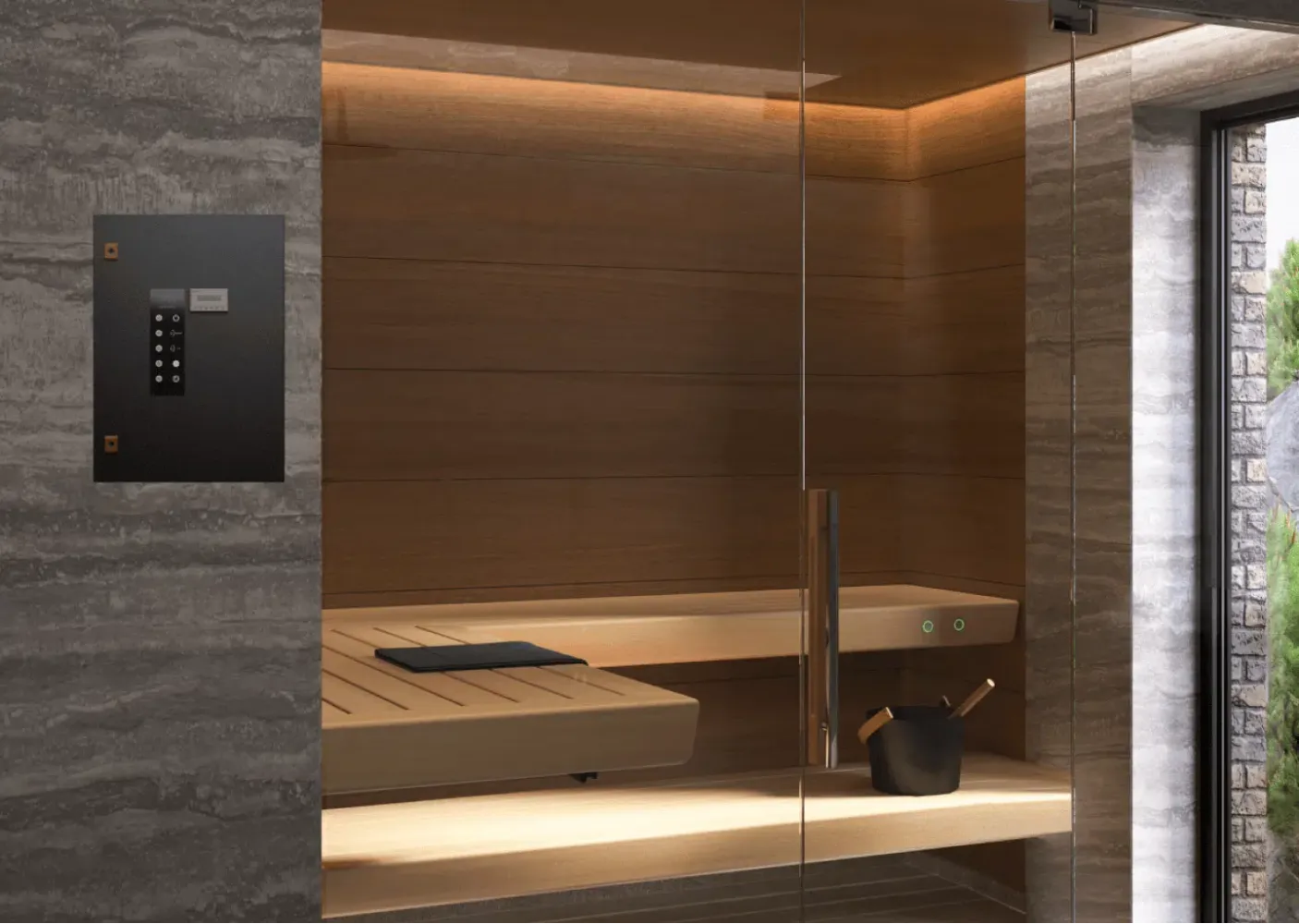 Система управления Sangens Panel System выполнена в металлическом корпусе с защитой от пыли и влаги. Температура эксплуатации от +1°C до +40°C, влажность до 80% (при +25°C). Корпус системы управления предусматривает как накладной тип монтажа, так и встроенный в стену. Настройка выполняется при помощи кнопок на передней панели блока. Для индикации используется LED дисплей. Диапазон регулировок: Тзакр. каменки от 300 до 530°C, Твозд.от 0 до 120 °C.
