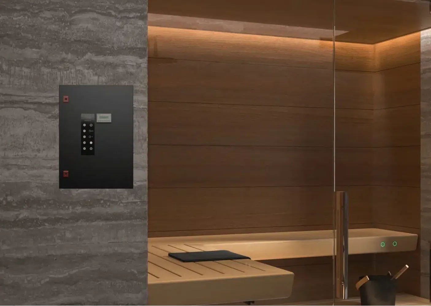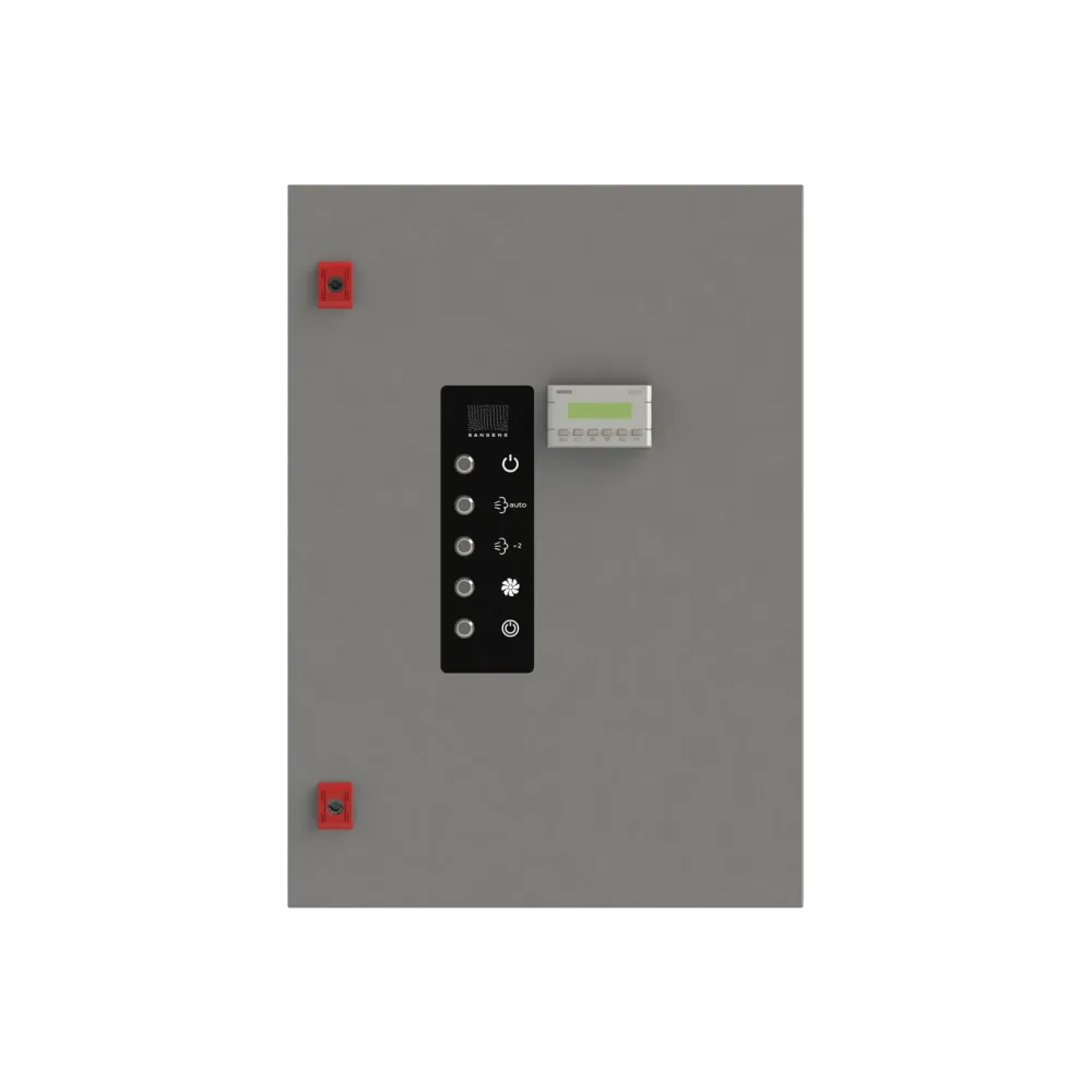 Система управления Sangens Panel System выполнена в металлическом корпусе с защитой от пыли и влаги. Температура эксплуатации от +1°C до +40°C, влажность до 80% (при +25°C). Корпус системы управления предусматривает как накладной тип монтажа, так и встроенный в стену. Настройка выполняется при помощи кнопок на передней панели блока. Для индикации используется LED дисплей. Диапазон регулировок: Тзакр. каменки от 300 до 530°C, Твозд.от 0 до 120 °C.