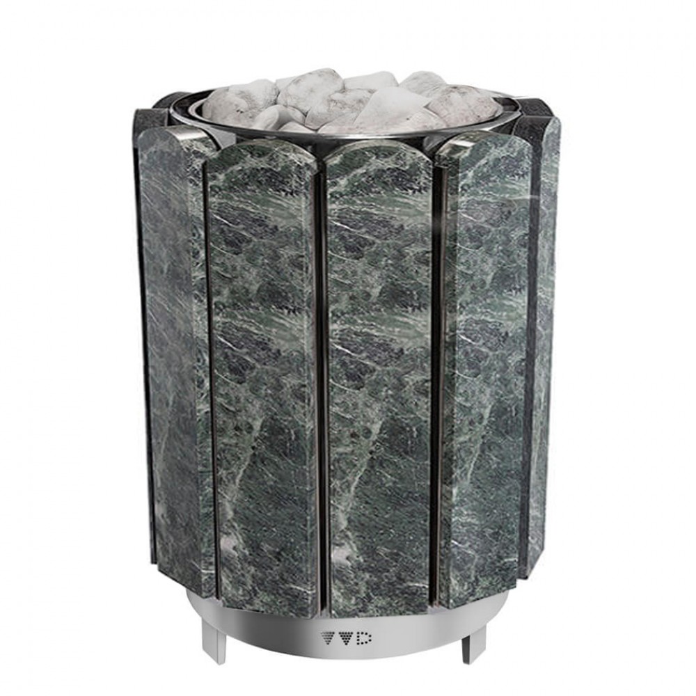 - Быстрый прогрев помещения и хороший пар обеспечиваются высокой мощностью нагревательных элементов и большим объемом камней вокруг них.