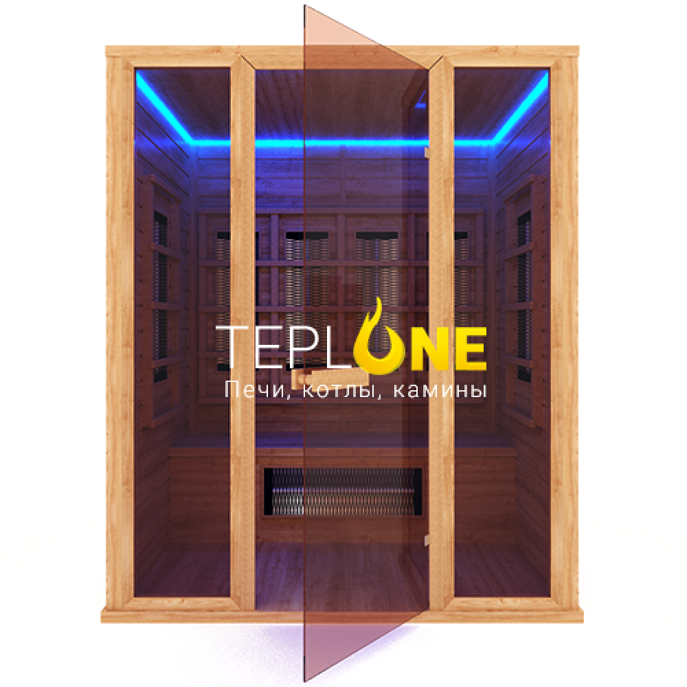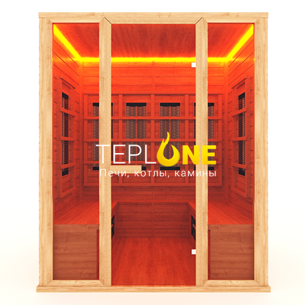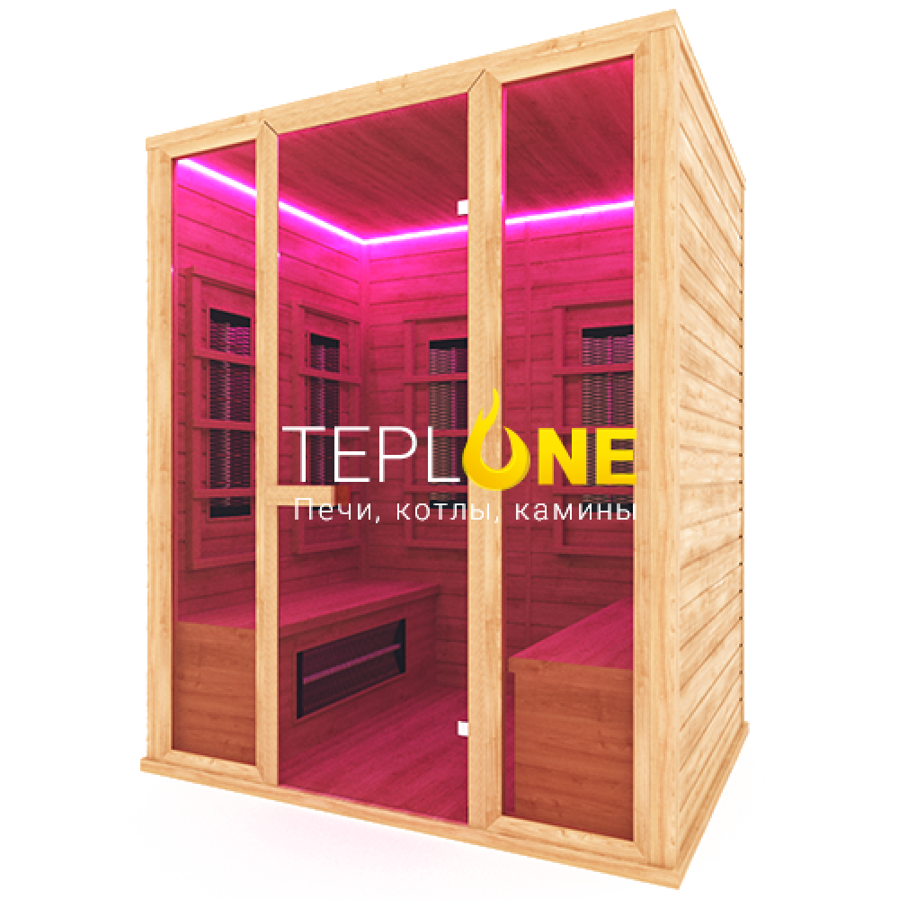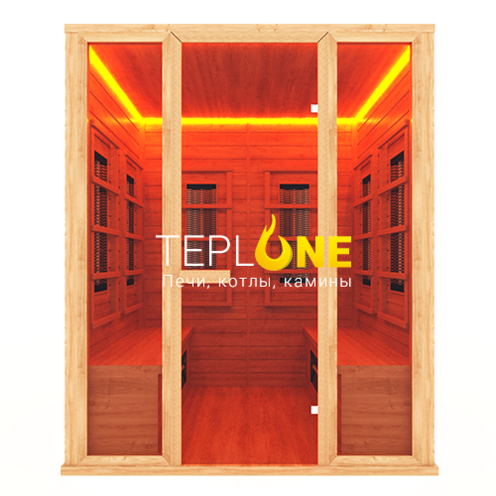 Инфракрасная сауна из кедра прямая (пристенная) вместимостью от 1 до 6 человек с керамическими нагревателями.