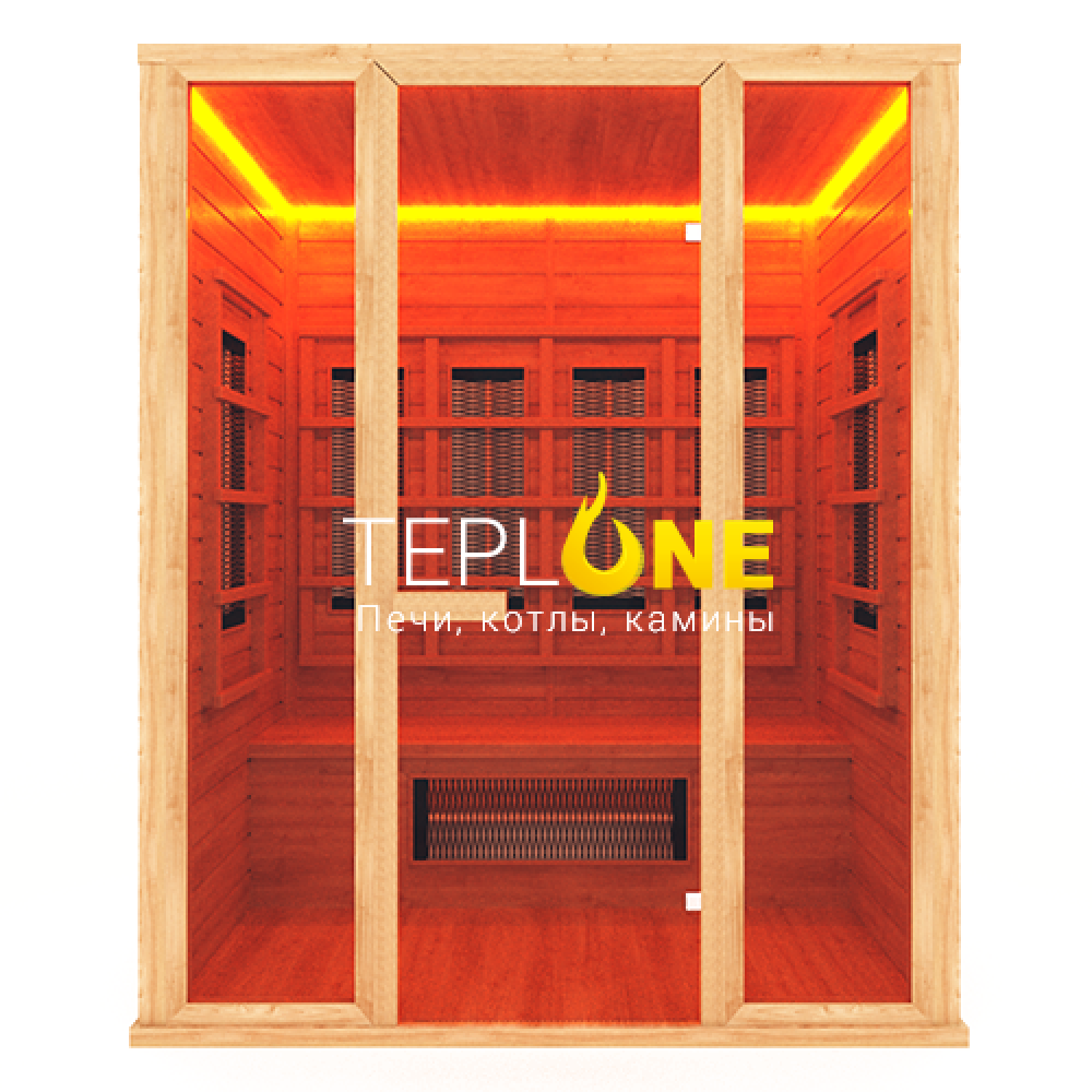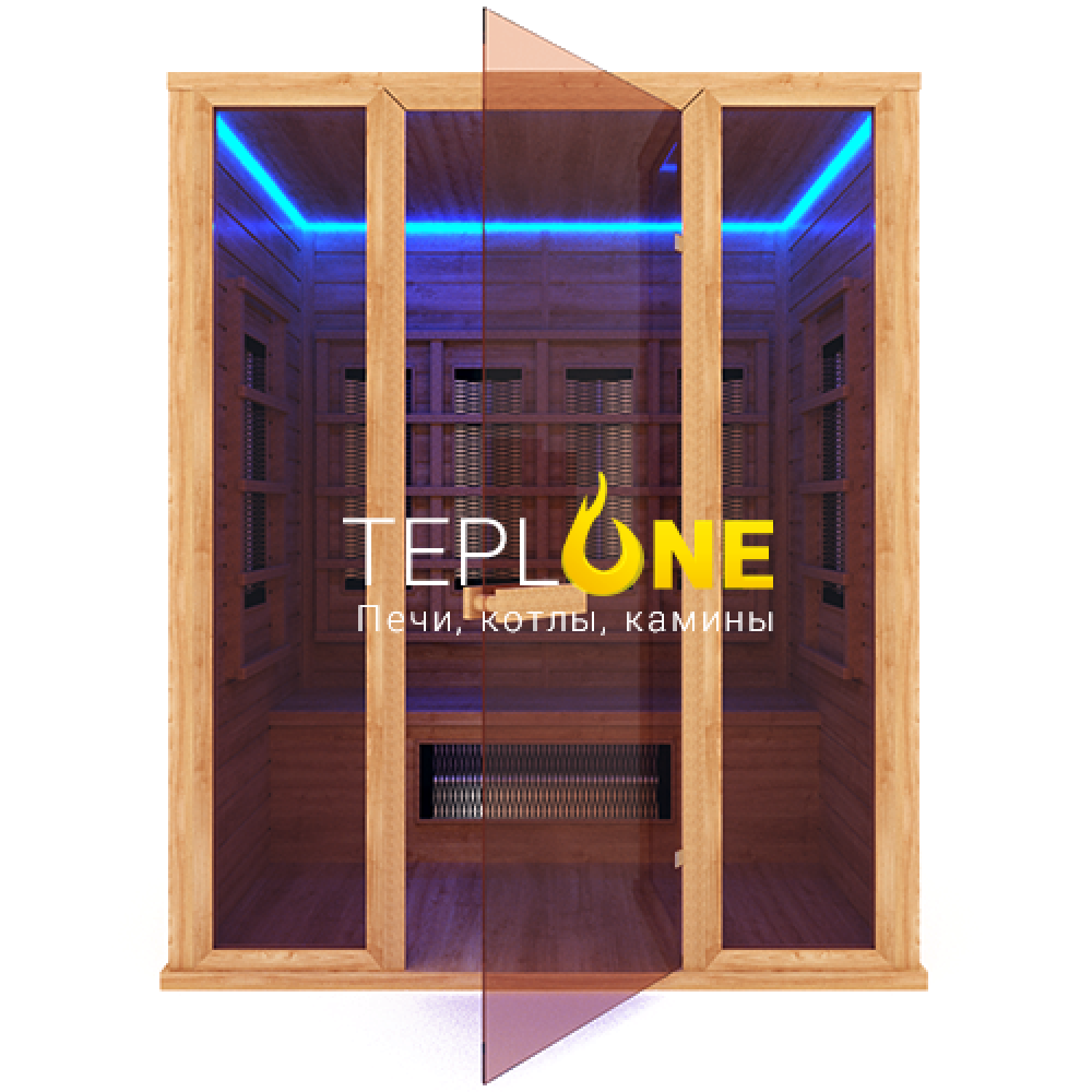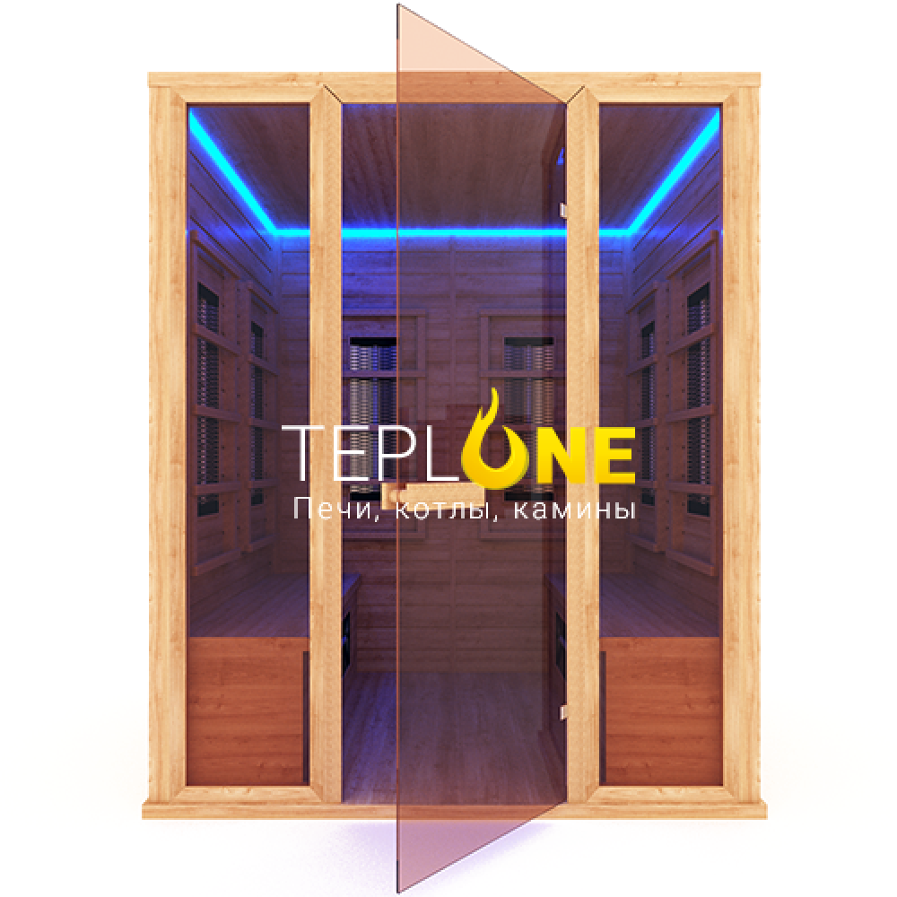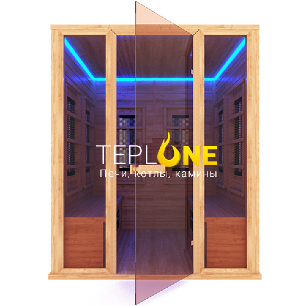Инфракрасная сауна из кедра прямая (пристенная) вместимостью от 1 до 6 человек с керамическими нагревателями.