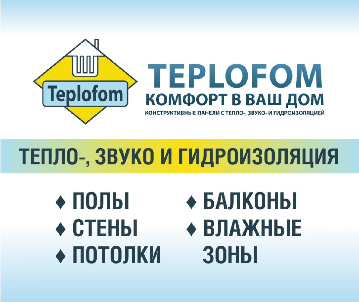 Сочетание хороших теплоизоляционных свойств полистирола и высокой поверхностной прочности полимерцемента позволяют применять панели TEPLOFOM+ для утепления наружных стен зданий и сооружений в традиционном, контейнерном и каркасно-щитовом строительстве. Высокие экологические качества предлагаемой продукции дают возможность использовать ее для внутренней теплоизоляции, в том числе утепления балконов и лоджий, полов и т. д. Последняя модификация продукции ООО «ТД Современные материалы» — панель TEPLOFOM+PL — с внешних сторон покрыта слоями фанеры и может быть задействована при утеплении фундамента и других конструкций.