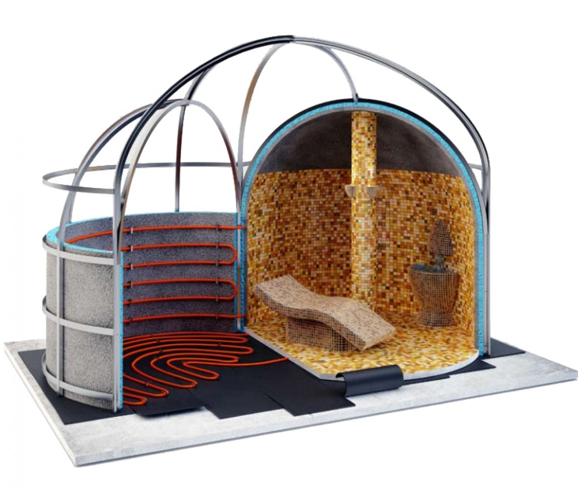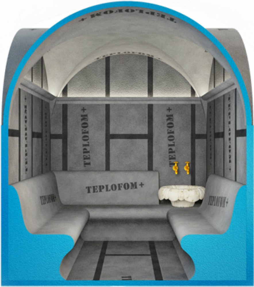 В качестве конструкционного материала влагостойкие панели TEPLOFOM+ особенно востребованы в помещениях с высокой влажностью (ванных комнатах, санузлах, бассейнах, душевых кабинах) и там, где необходимо создавать сложные криволинейные поверхности (колонны, арки и т. п.).
