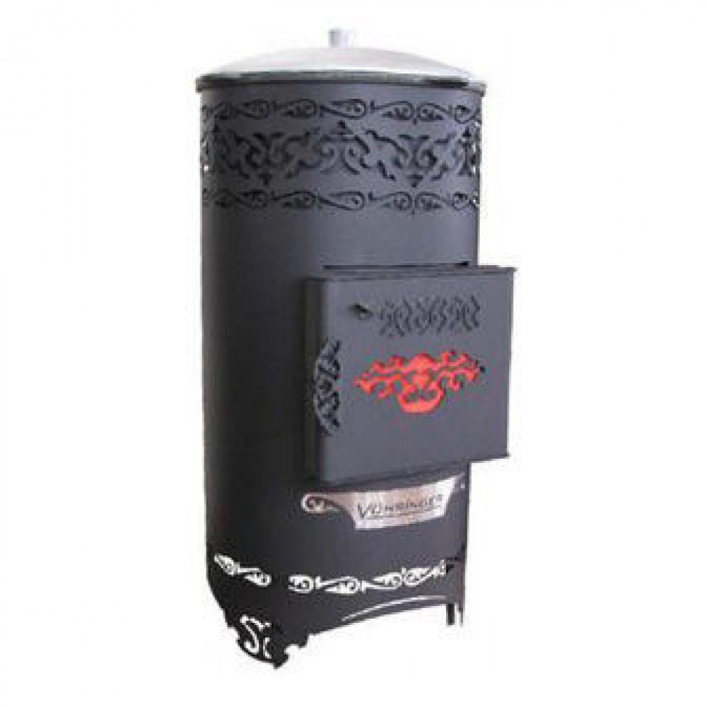 Печь с чугунным казаном на 12 литров и алюминиевой крышкой.